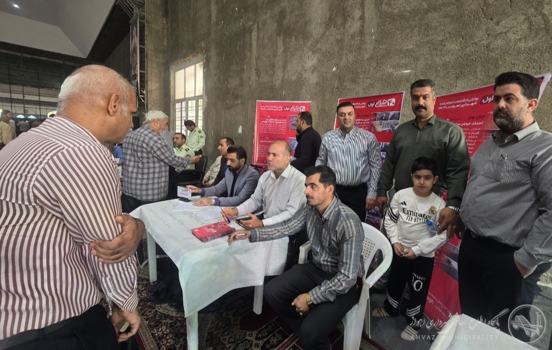 پاسخگویی به درخواستهای شهروندان در میز خدمت شهرداری منطقه ۸ اهواز در مصلی نماز جمعه